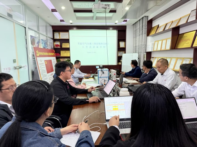 培訓(xùn)中,沈老師簡(jiǎn)要介紹了本次培訓(xùn)的目的,并結(jié)合氣體設(shè)備市場(chǎng),重點(diǎn)介紹了常溫空氣分離工藝基礎(chǔ)知識(shí)、常溫空氣分離(變壓吸附及膜)工藝及設(shè)備、碳分子篩及變壓吸附制氮技術(shù)、壓縮空氣膜干燥工藝及設(shè)備等知識(shí),通過(guò)深入淺出的現(xiàn)場(chǎng)講解和提問(wèn)方式,鼓勵(lì)學(xué)員們主動(dòng)思考、積極發(fā)言。